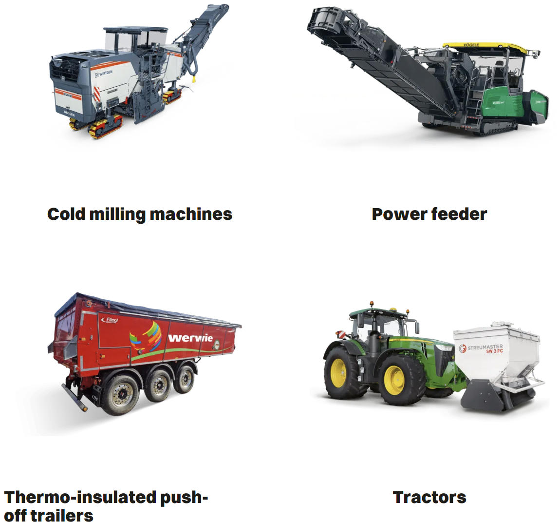 Ensure the performance of your construction machinery with high-quality spare and wear parts. We offer you a wide selection of spare parts from leading manufacturers such as WIRTGEN, VÖGELE, HAMM, BOMAG, and many more. This way, we ensure that your construction machines are always in perfect condition and work optimally on the construction site. Our spare parts are tested for the highest quality, allowing you to minimize downtime and implement your projects efficiently.